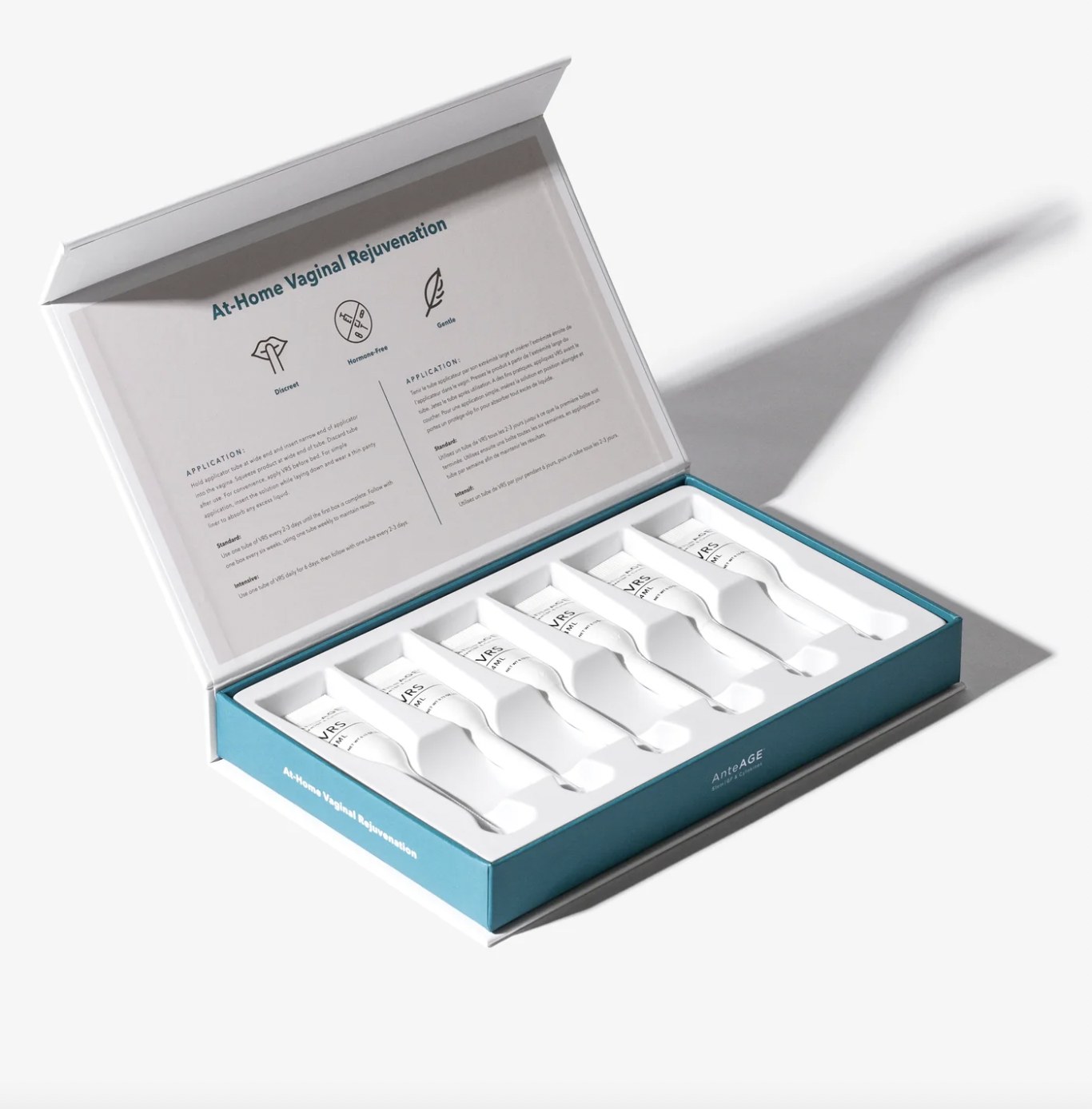 he AnteAGE® Vaginal Rejuvenation Solution is a regenerative vaginal moisturizer. Harnessing the natural power of bone marrow stem cells, AnteAGE® VRS delivers lost bio-signals to restore a youthful micro- environment. Our at home VRS safely restores the vaginal wall using growth factors and cytokines without any added hormones. Physiologically balanced bio-signals from the stem cell cytokines reduce inflammation while the hyaluronic acid increases moisture that is native to the body. Clinical studies show tremendous improvements in dryness, pain and vaginal epithelium thickness within 1-3 months of use.